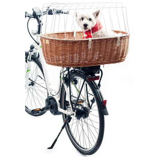Bestens geeignet für Ausflüge mit größeren Hunden und Katzen ist dieses Modell, das in zwei Größen bei uns erhältlich ist! Es qualifiziert sich dafür durch die hohe Belastbarkeit von bis zu 15 kg und die großzügigen Maße mit einer Länge von bis zu 74 cm. Durch die geflochtene Weide ist der Korb zudem besonders stabil, die zusätzliche Ausstattung sorgt außerdem dafür, dass ihr Vierbeiner nicht nur entspannt, sondern auch sicher mitfährt. Dazu tragen vor allem die weiche, waschbare Einlage sowie die weiße Sicherheitsdrahtkuppel bei, durch die Ihr Liebling einen ungestörten Rundumblick hat.