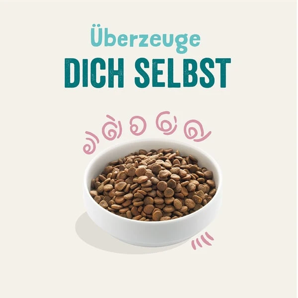 Frisches Huhn 40%, Kartoffeln, frische Ente 10%, Erbsen 8%, Erbsenprotein, Kartoffeleiweiß, Hühnersoße, Leinsaat, Hühnerfett, Mineralstoffe, Fischöl, Kürbis 0,5%, Kochbanane 0,5%, Mango 0,5%, Karotten 0,25%, Preiselbeeren 0,25%, Mannan-Oligosaccharide (MOS), Fructo-Oligosaccharide (FOS), Kräuter 0,2%, Glucosamin, Chondroitinsulfat.