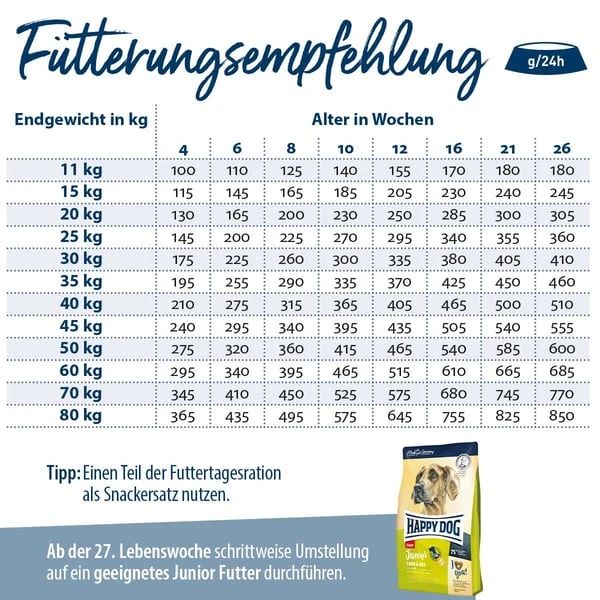 Rohprotein 30,0%, Rohfett 16,0%, Rohfaser 2,5%, Rohasche 8,5%, Calcium 1,5%, Phosphor 1,1%, Natrium 0,5%, Kalium 0,55%, Magnesium 0,08%, Omega-6-Fettsäuren 3,1%, Omega-3-Fettsäuren 0,3%