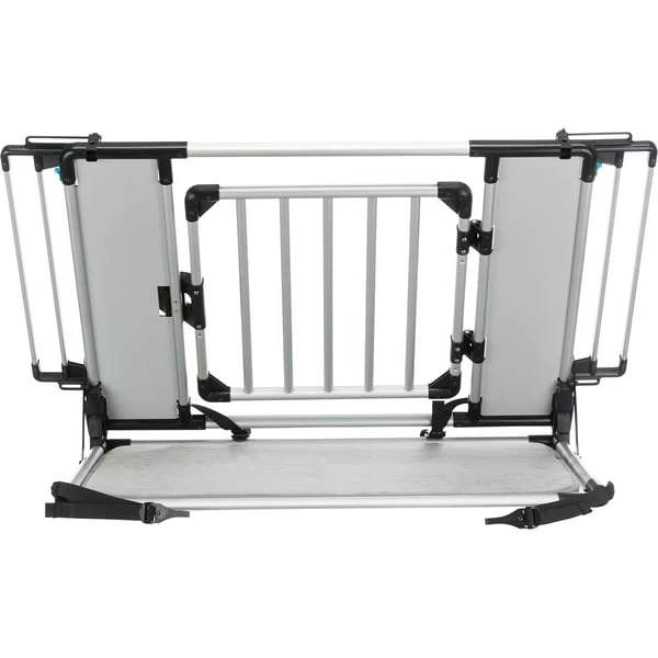 Das Universal-Heckgitter von Trixie wird direkt hinter der Heckklappe platziert und eignet sich für fast alle Fahrzeugtypen. Die Breite lässt sich stufenlos durch verstellbare Seitenteile anpassen. Die Wickelung des Gitters ist ebenfalls verstellbar dadurch kann der gesamte Kofferraum als Liegefläche genutzt werden. Falls das Gitter nicht benötigt wird, kann es einfach eingeklappt werden. Die enthaltene Liegematte ist bei 30 Grad in der Maschine waschbar.